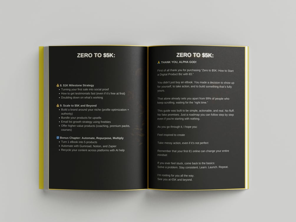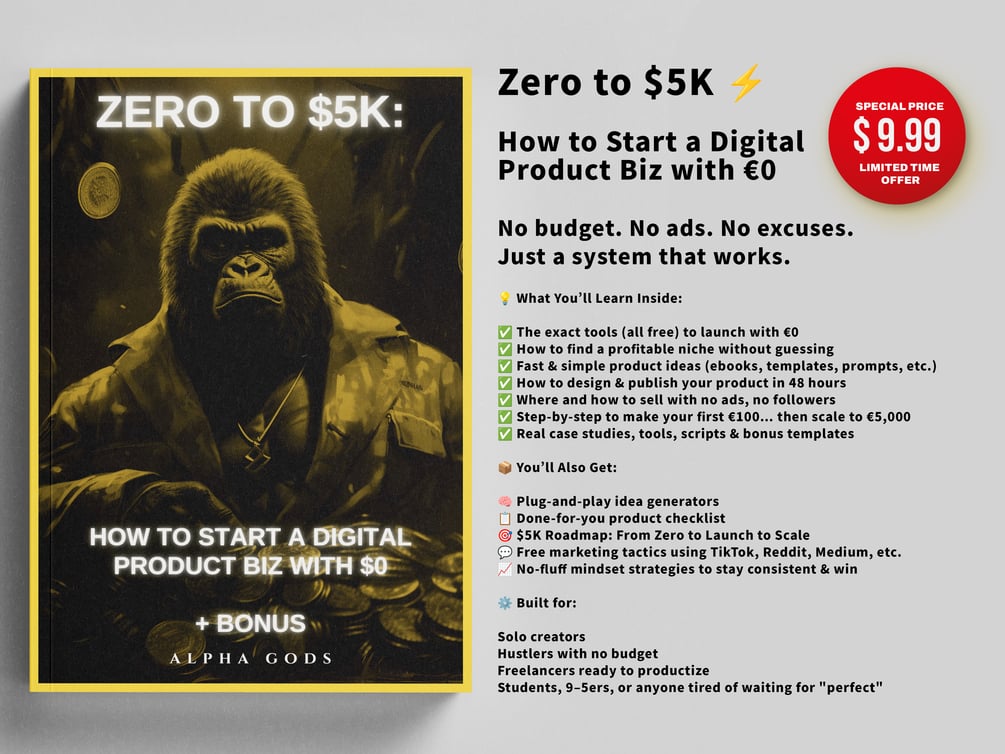 This eBook gives you the exact steps to go from idea → product → €5K, fast — with nothing but free tools and focused action.